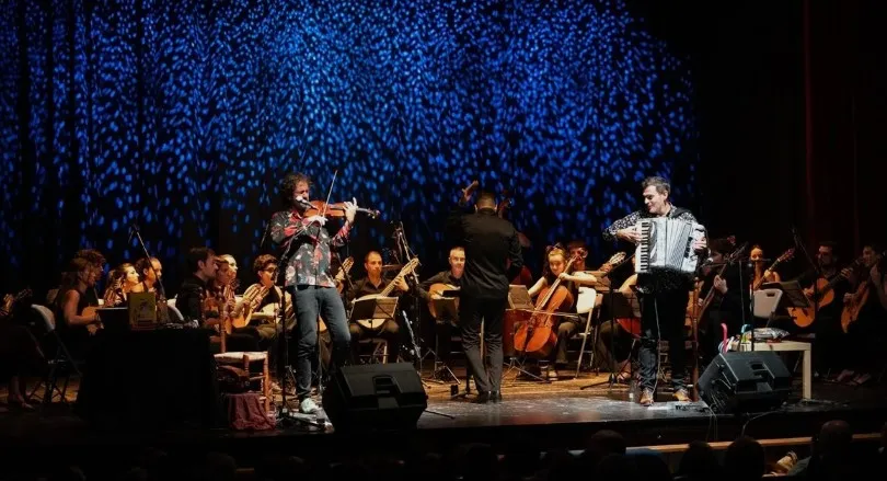 La fusión entre el dúo Fetén-Fetén y la Orquesta Ciudad de La Mancha da vida a un espectáculo único que celebra la riqueza de la música popular española con una perspectiva contemporánea.